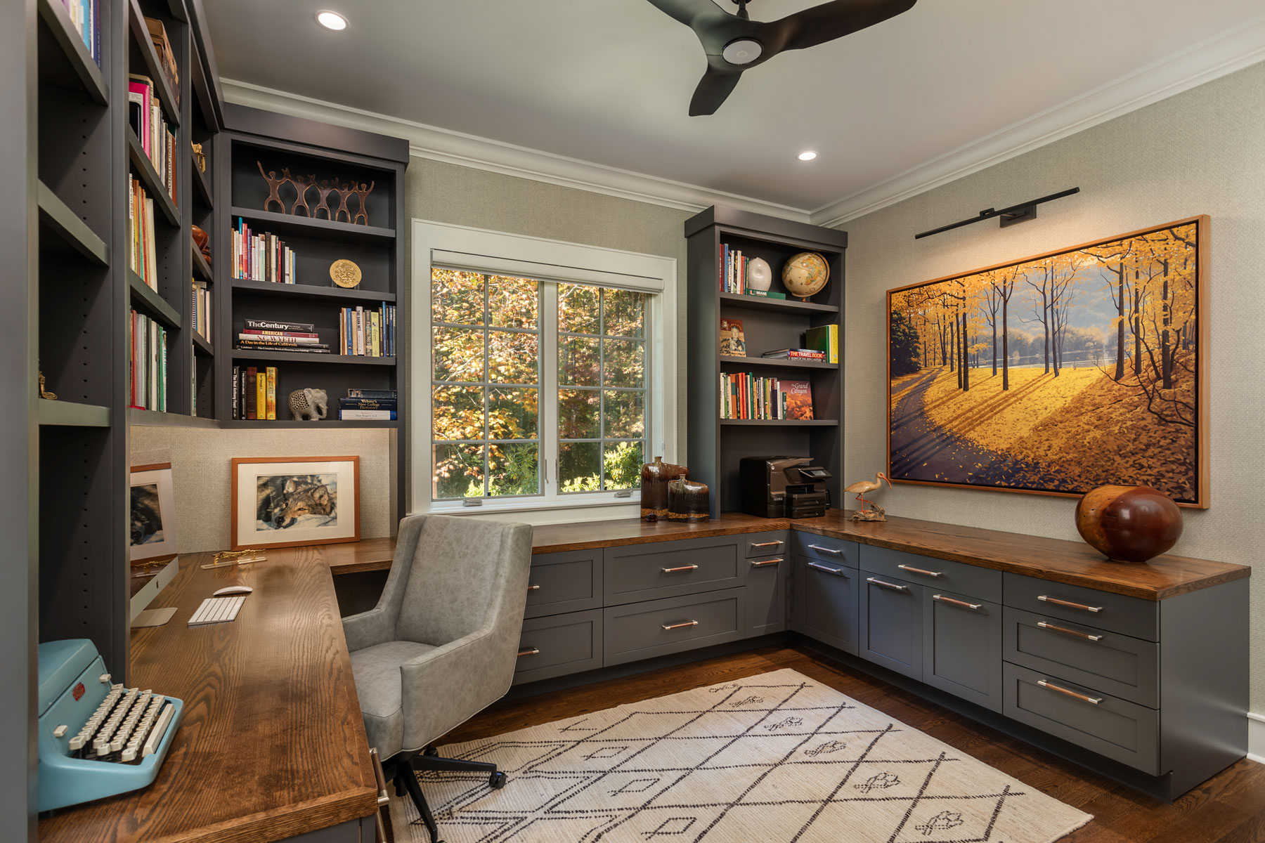 Allard + Roberts was tasked with putting a team together to handle the renovation process, and with envisioning a new color palette and architectural details throughout to personalize the home. Our design team created floor plans and elevations for the renovations, including a new custom Kitchen design and custom built ins. A+R also identified a general contractor to do the work. Adam Shook of Stonewood Builders ultimately completed the renovation, and managed a team of superior subcontractors throughout the COVID era restrictions and supply chain issues. The homeowners lived locally throughout the renovations and were able to visit the site regularly and work through concerns with the builder and our design team.