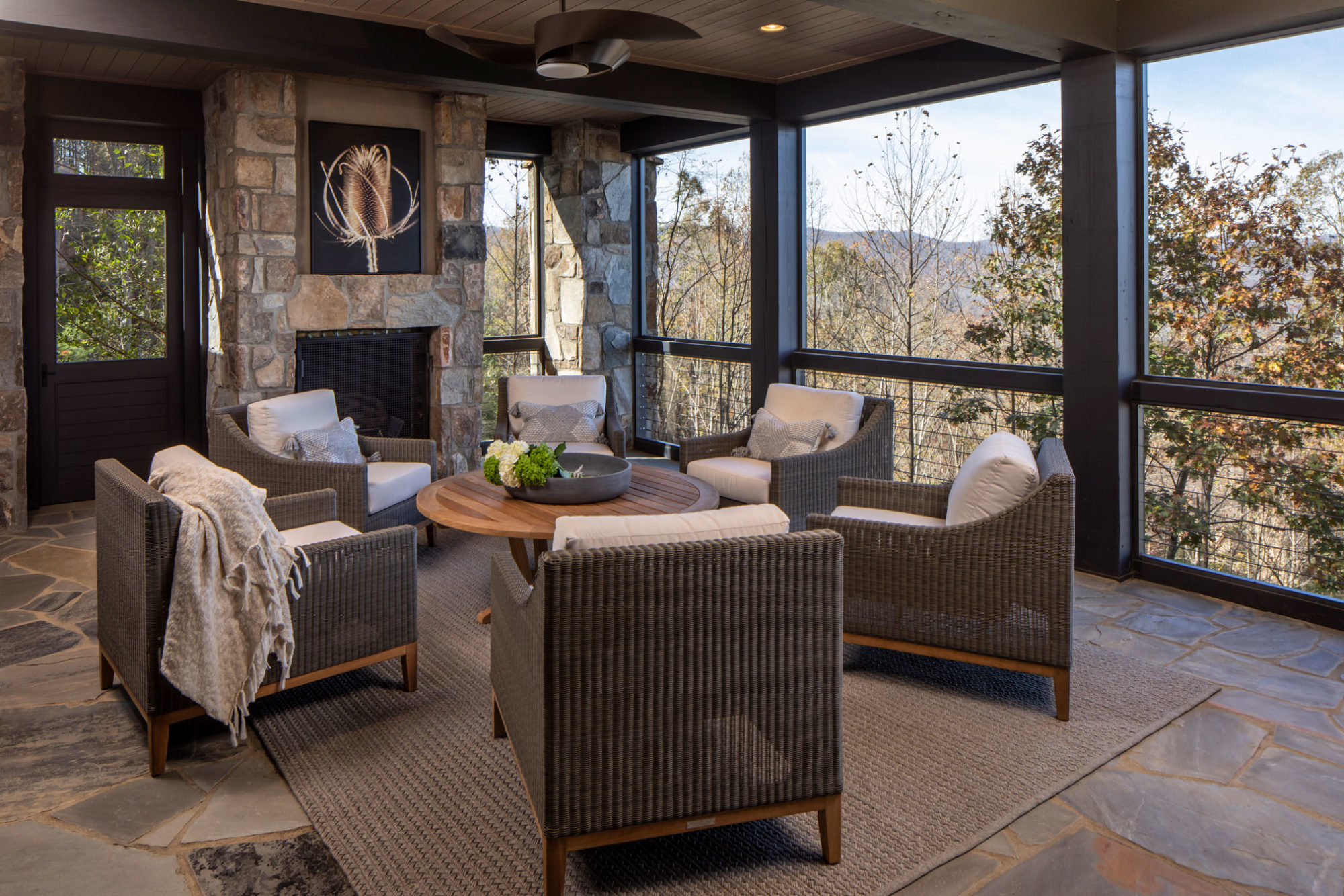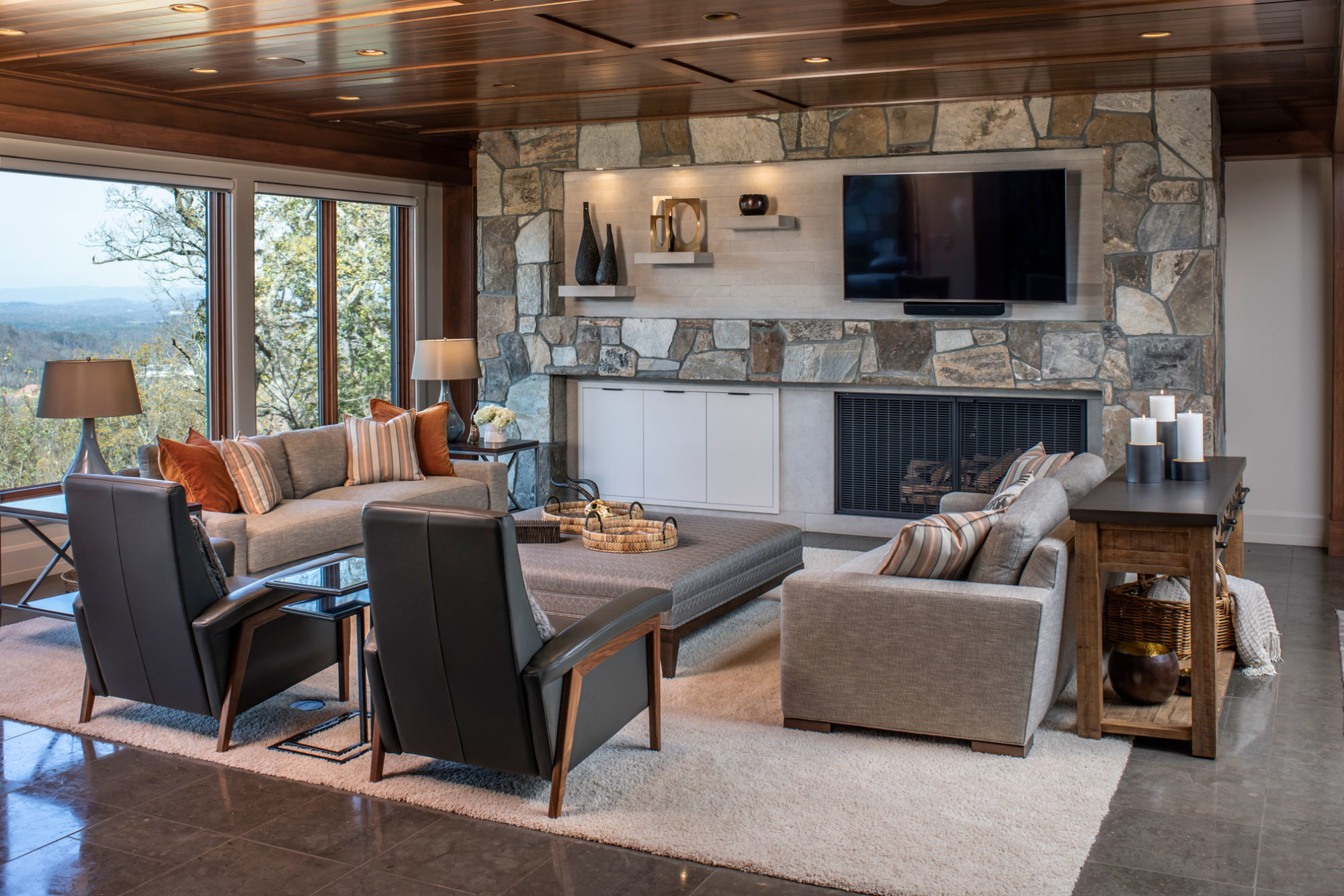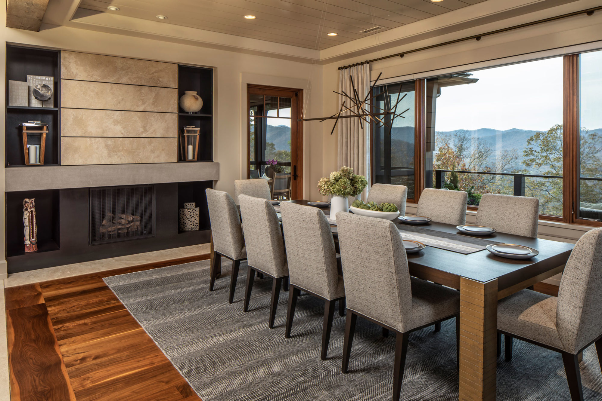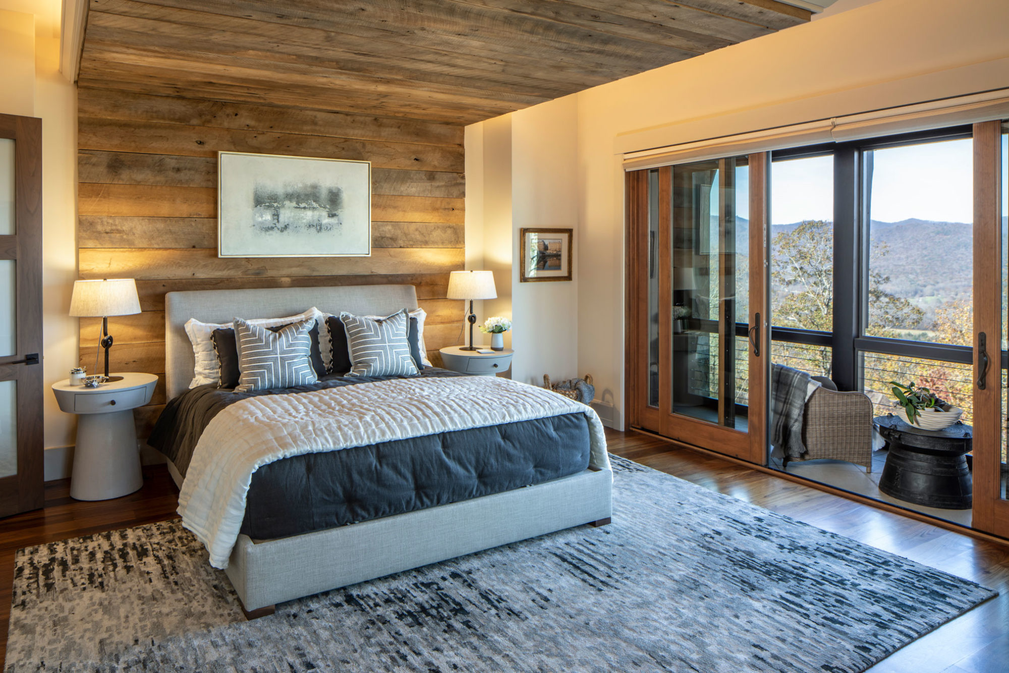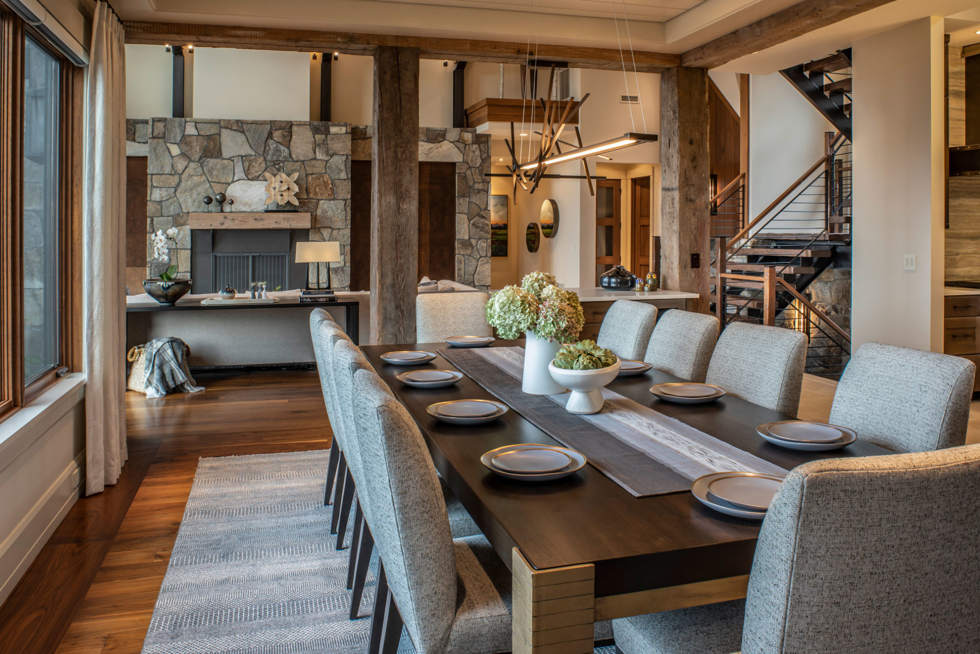 The original home was a custom designed spec home built by a local builder/developer. When our clients purchased the property, they were eager to put their own stamp on this incredible mountain home. It was full of rich details such as the exposed timber frame in the living Room, walnut and oak features throughout, and had incredible views of the valley below. But some of the finishes were not to the client’s taste, and we worked with them to adjust those features and to source furniture and decor throughout. We also introduced the homeowners to one of our preferred contractors, who worked with us and them throughout the updates and renovations.