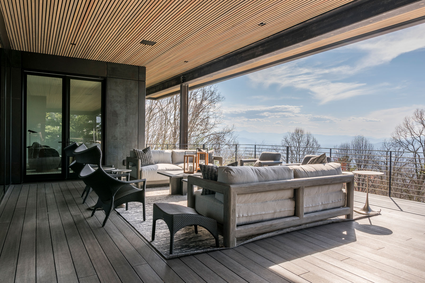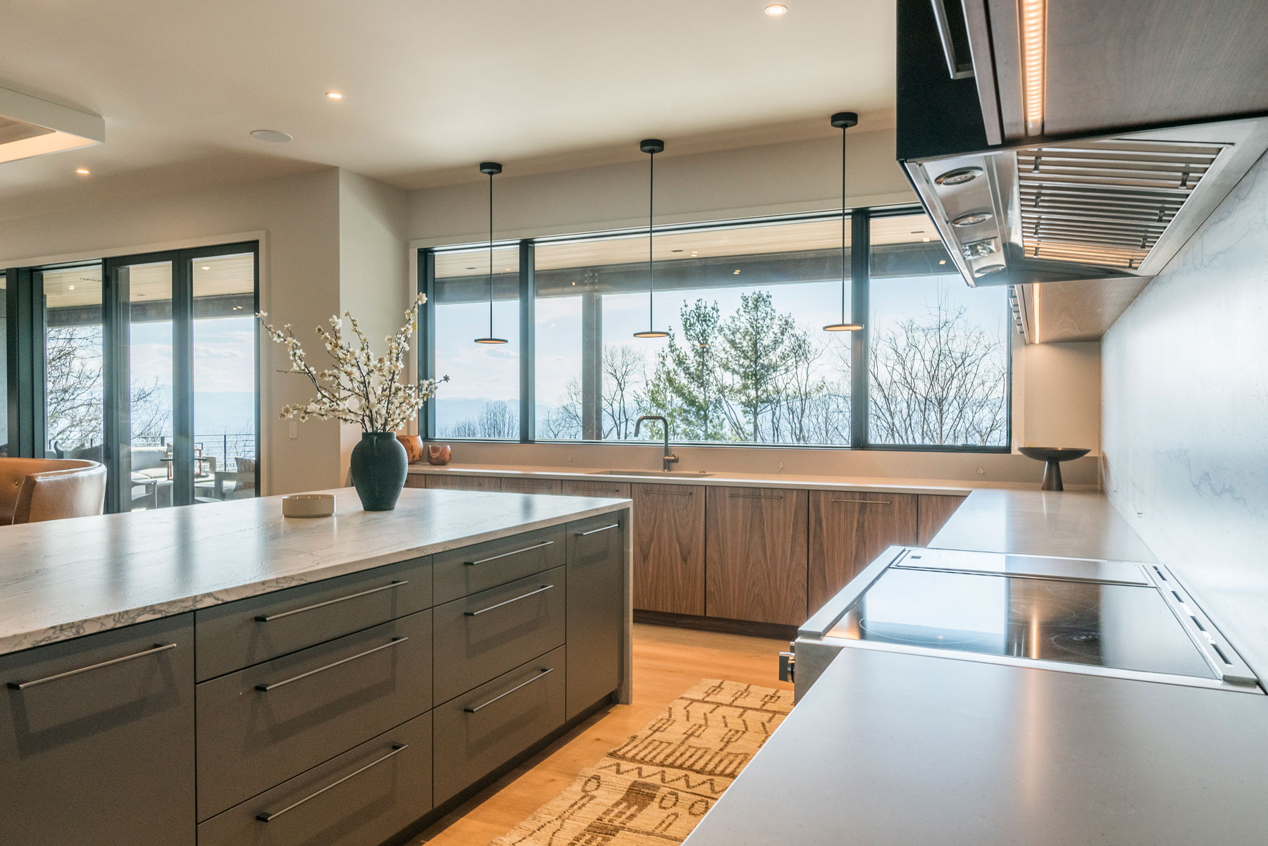 Our client’s existing home sits atop Asheville’s Town Mountain, in a neighborhood of mid century homes. The existing home has incredible long range mountain views, and had previously been renovated by the former owners. However, it also featured an outdated Kitchen with an odd layout, and lacked the outdoor living and dining space that would take advantage of the views. Those shortcomings were the original inspiration for the renovations. The new homeowners looked to Kyle from Robinson Design Studio for a design intended to expand the main level of the home to include covered outdoor living space, a larger Kitchen, a new Butler’s Pantry, and a renovated Master Suite with an added sitting room that includes outdoor access. In response, the rear of the home was extended outward toward the views, through a cantilevered steel design. The homeowners then selected Osada Construction to implement the new layout.